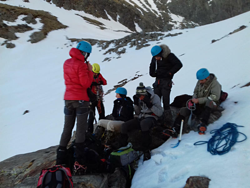 dOm 6h55. Au pied du couloir, on s'équipe. CORTALETS