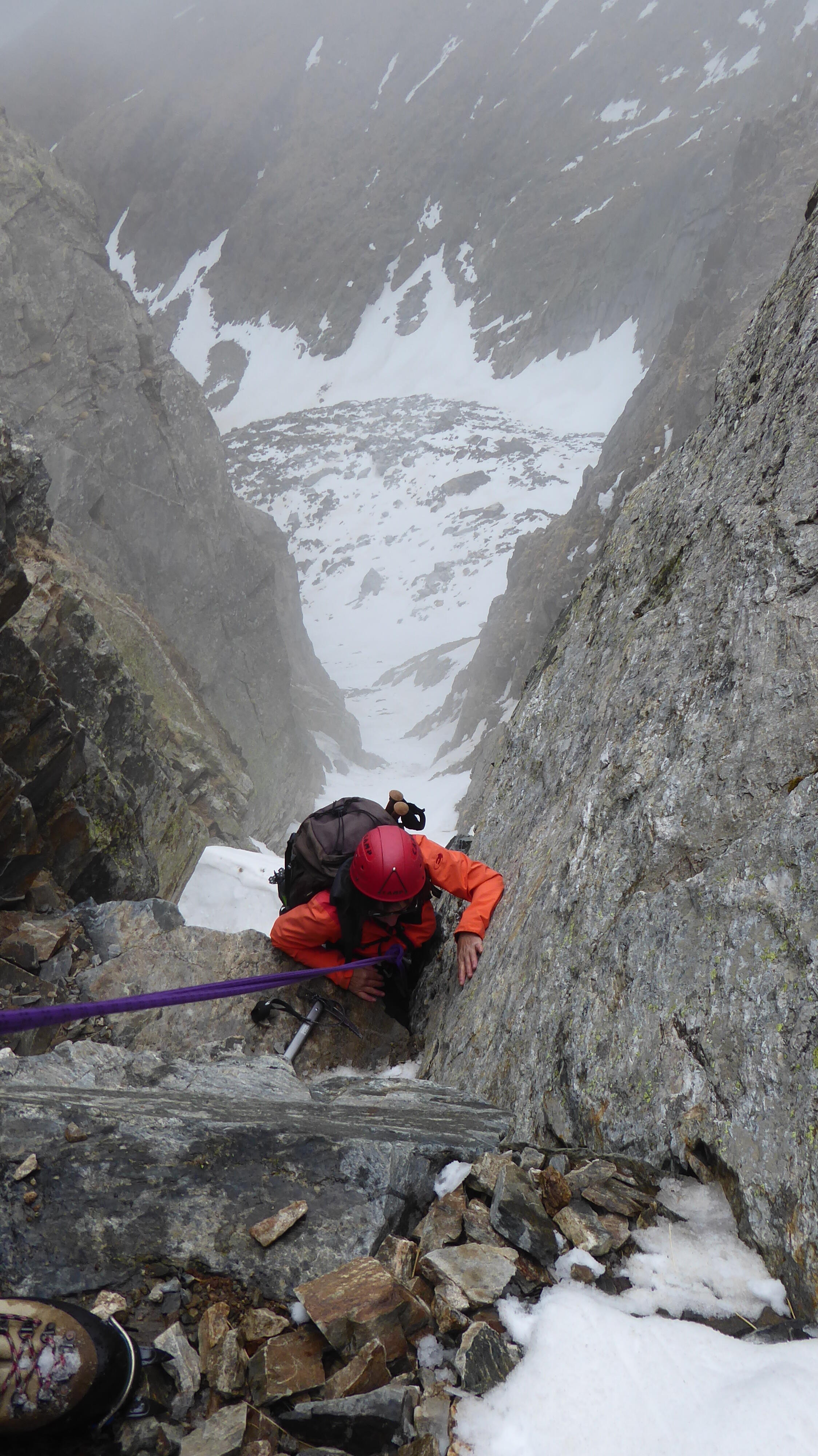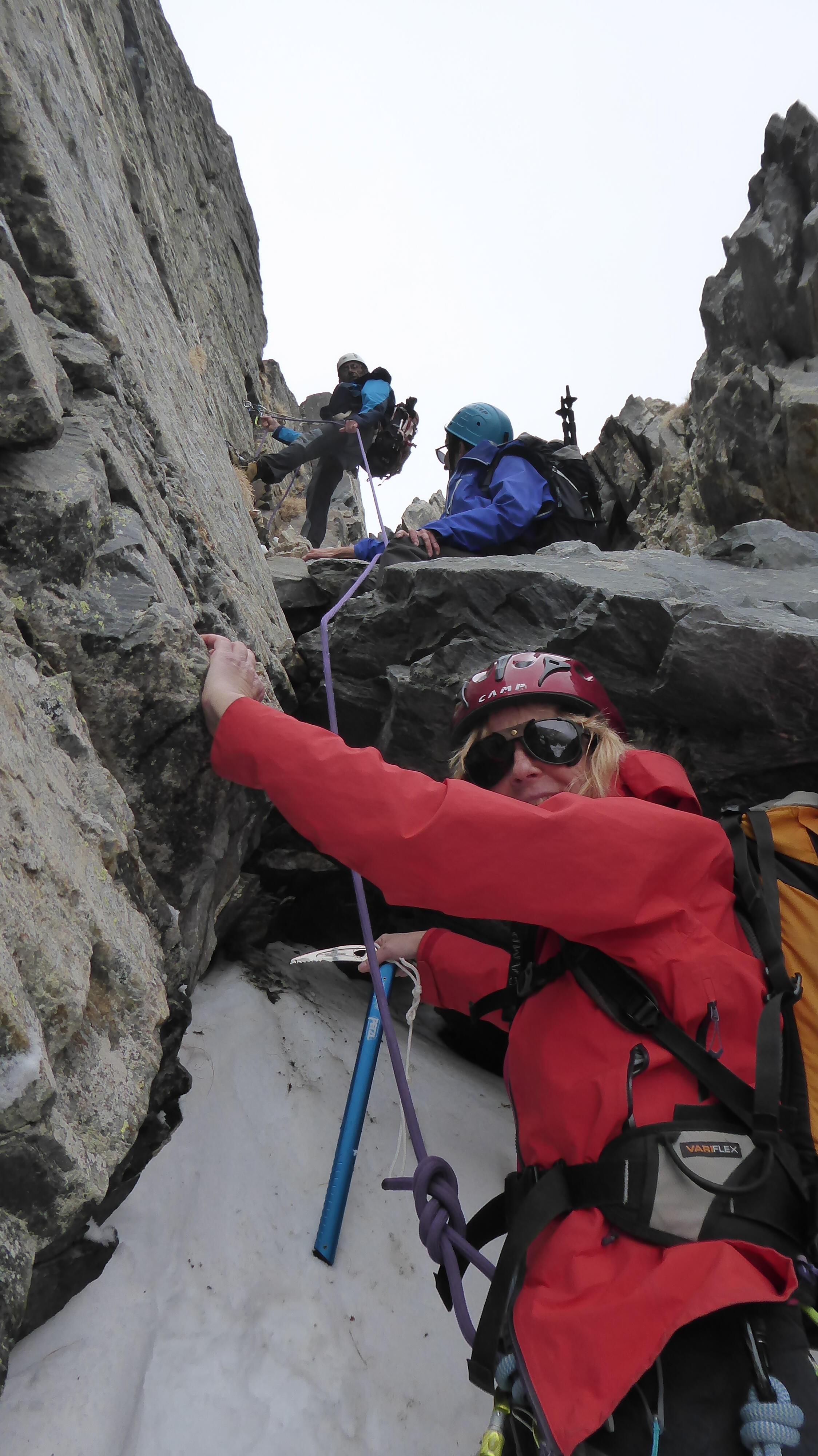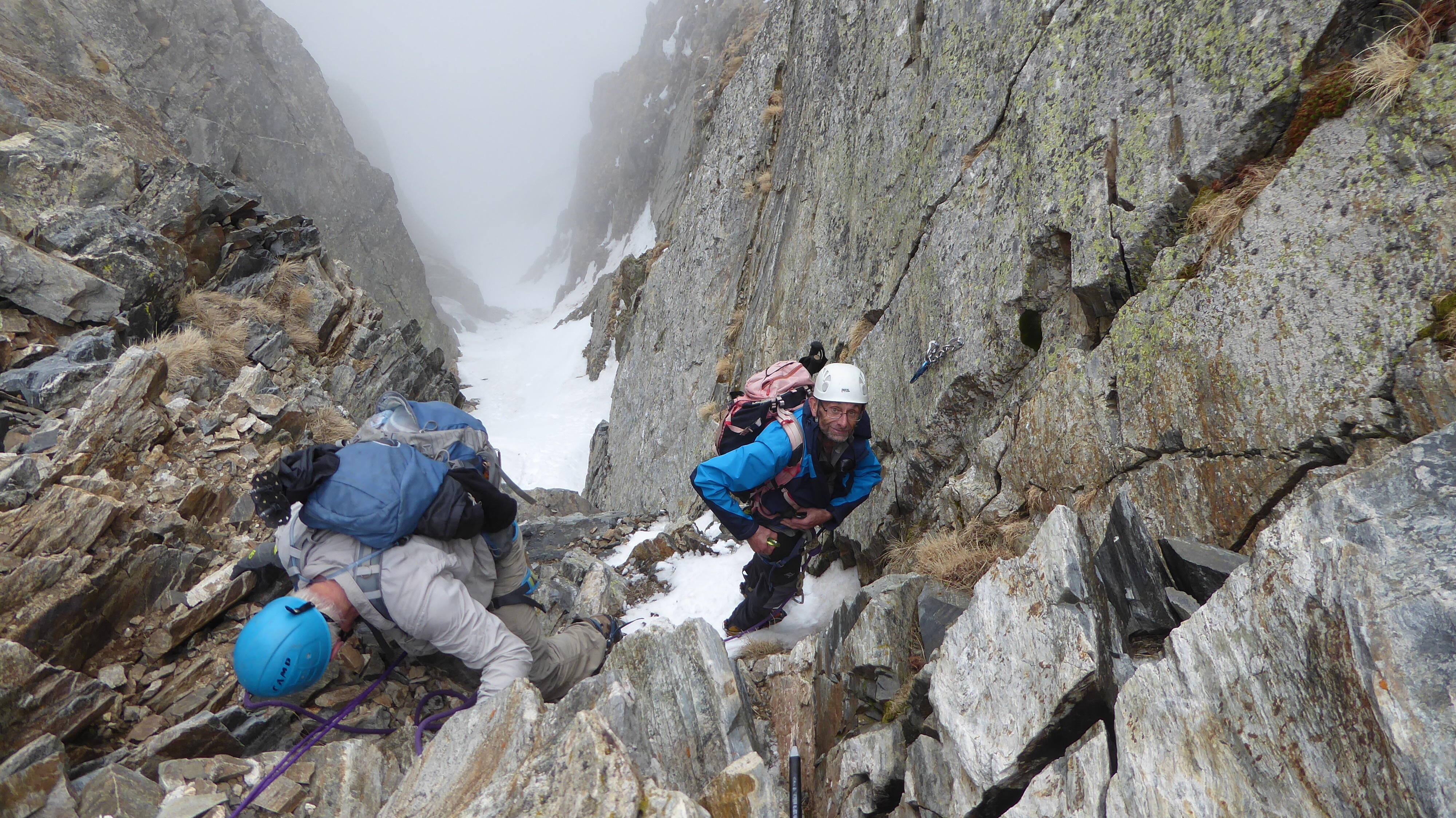 Pierre La corde est en place pour passer le bloc coincé