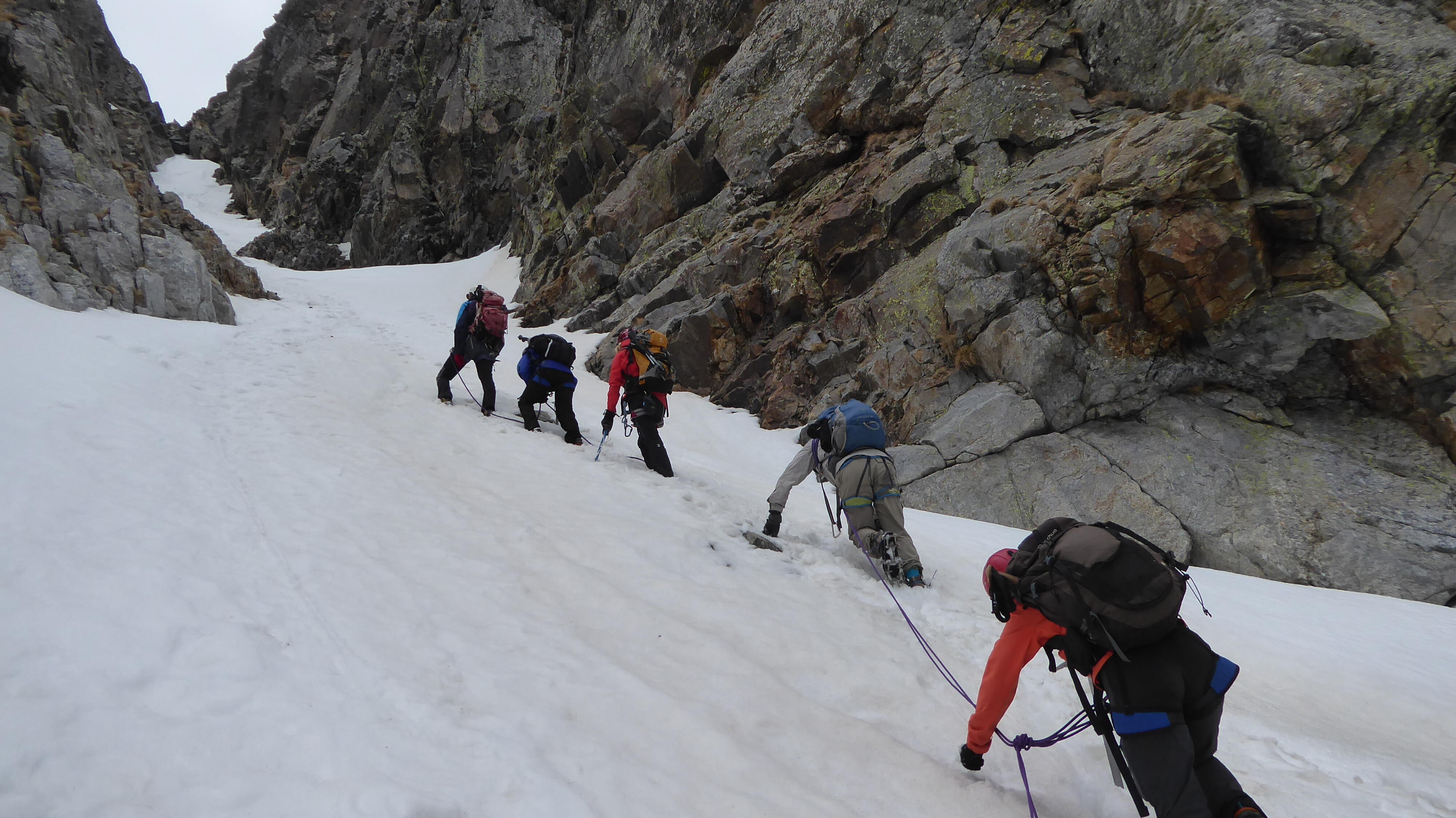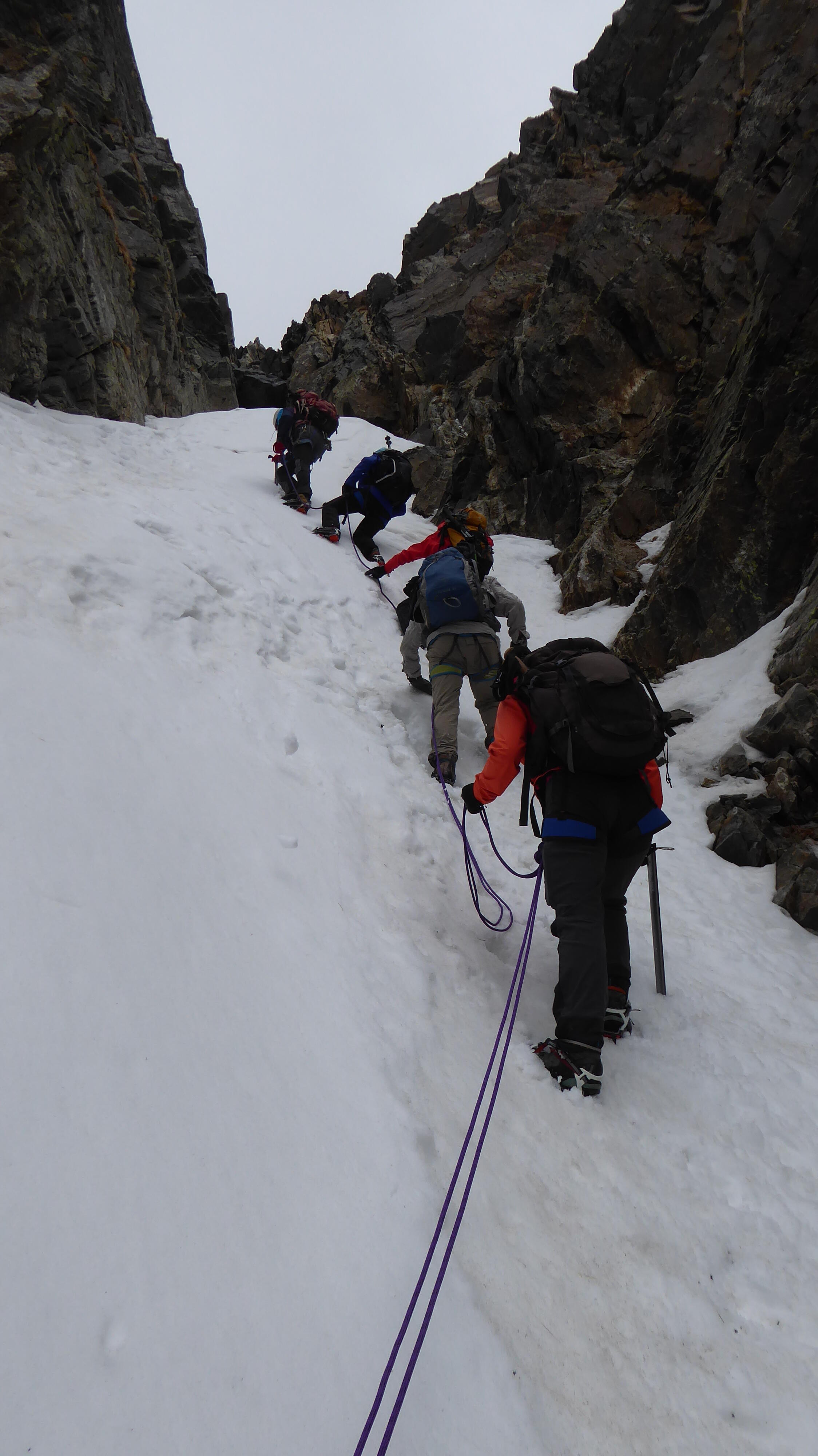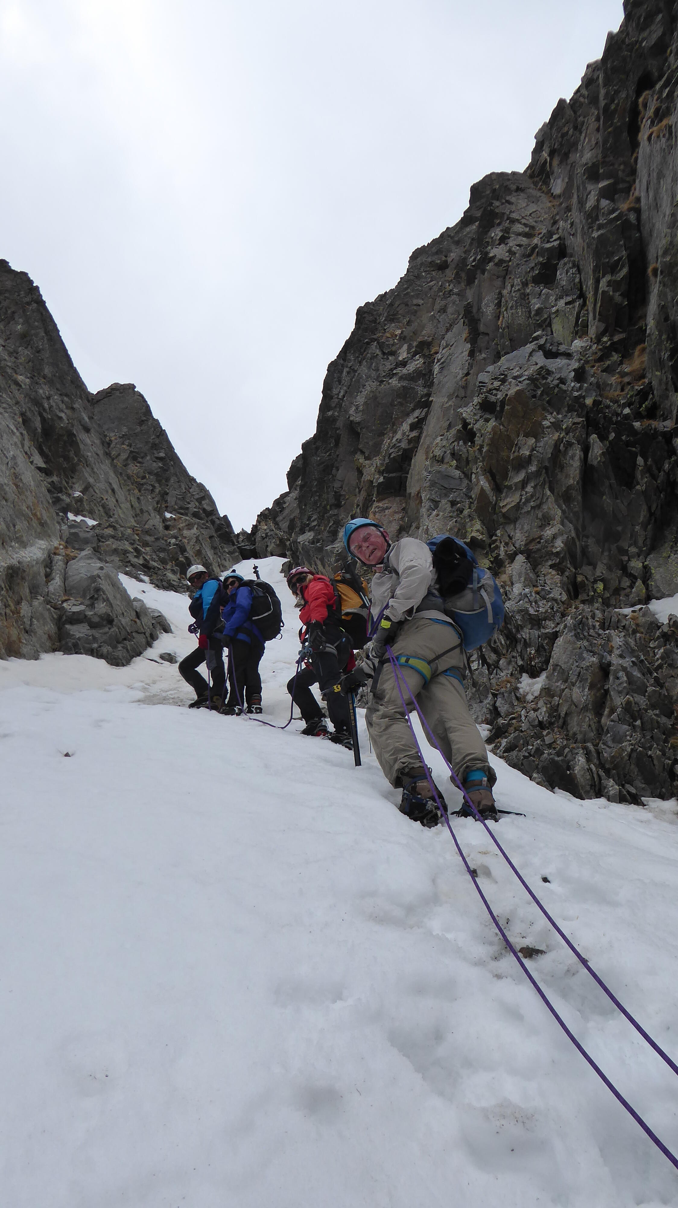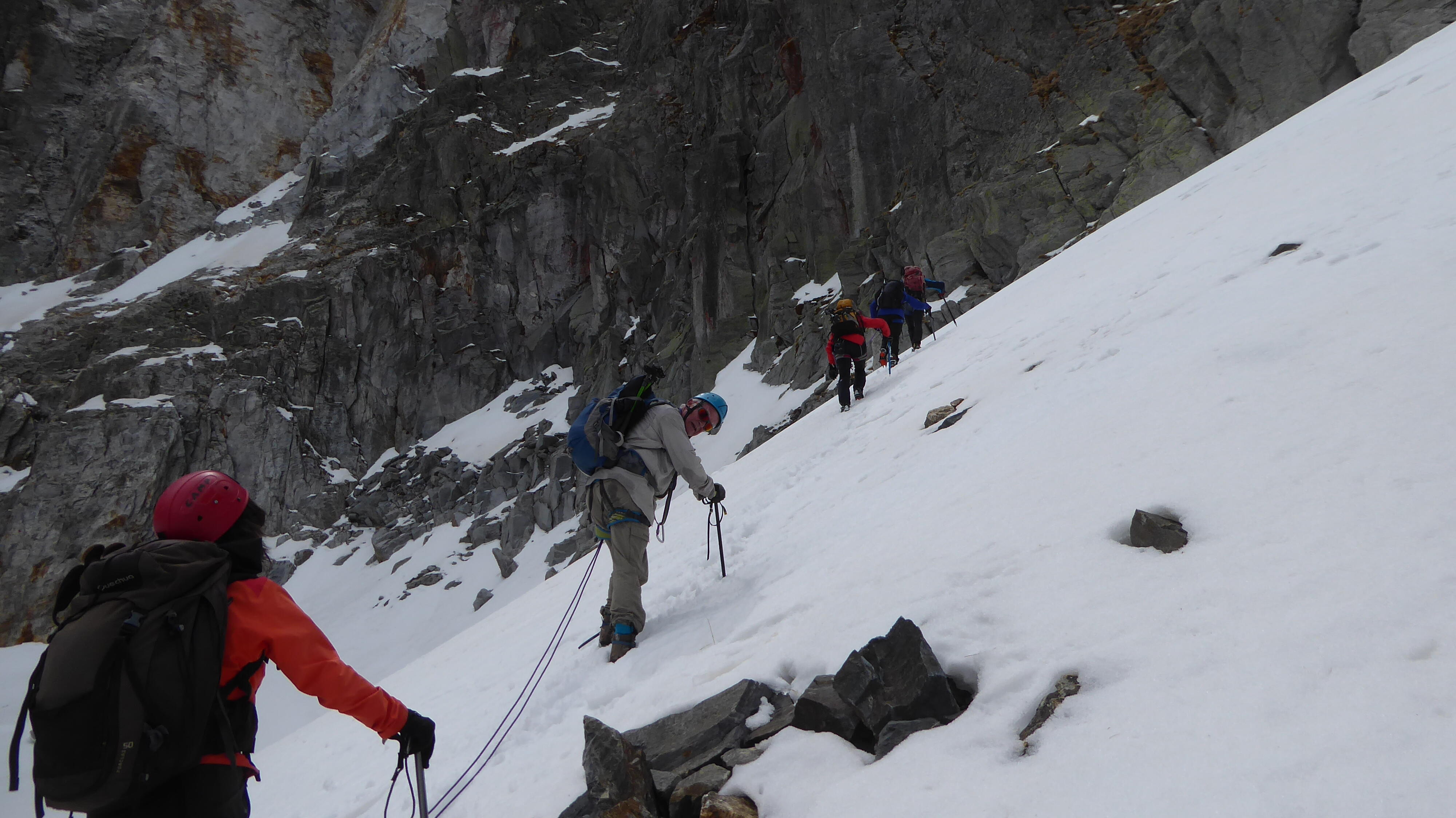 Pierre La corde est en place pour passer le bloc coincé