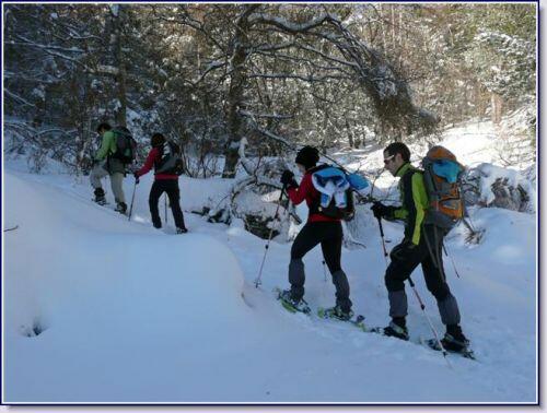 Ginette Dix cafistes prêts à découvrir le massif du Madres recouvert de son beau manteau blanc.